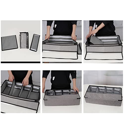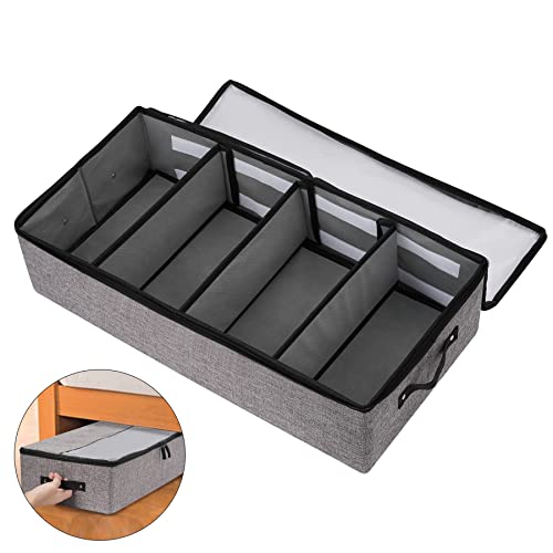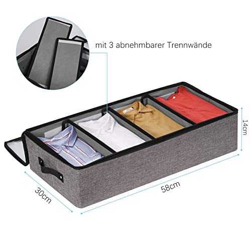 WPAJIRZO 2 scatole portaoggetti sotto il letto con coperchio, cassettiera sotto il letto, borsa portaoggetti sotto il letto, con divisore in velcro regolabile per riporre scarpe, pieghevole, grigio