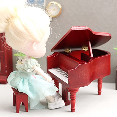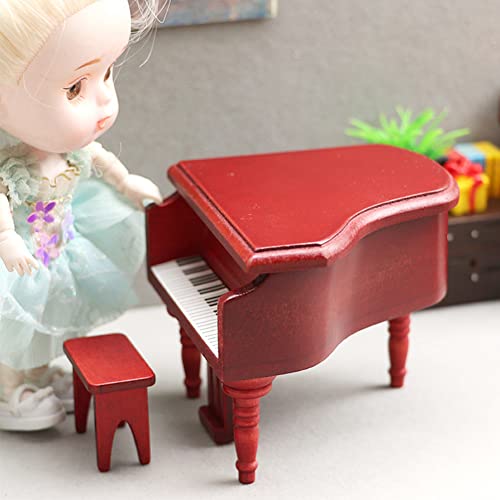 Wpond Mini modello di pianoforte in Legno con Ornamento della Sedia 1:12 Casa delle bambole in Miniatura Mobili decorazione della scena della Casa Mogano