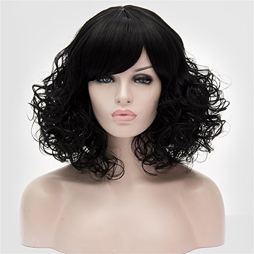 WPQES Parrucca sintetica parzialmente sparsa, parrucca di Halloween, parrucca da parrucchiera, parrucca quotidiana, parrucca 40cm (Nero)