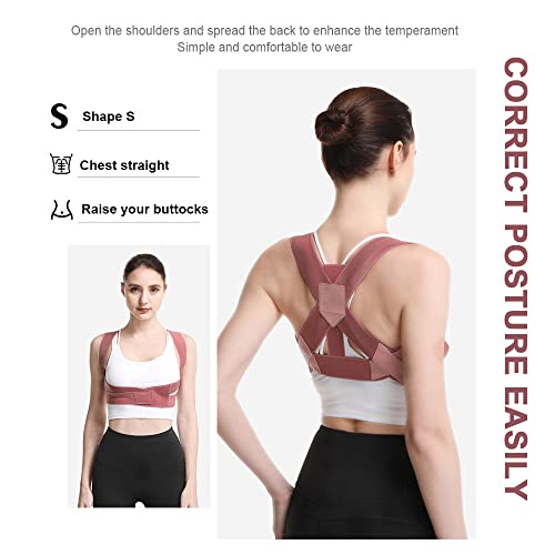 WQEPYY Correttore Posturale Spalle Schiena per Donne e Uomini, Universale Correttore Posturale Traspirante Regolabile per alleviare il dolore da collo, spalle e parte superiore della schiena (Rosa L)