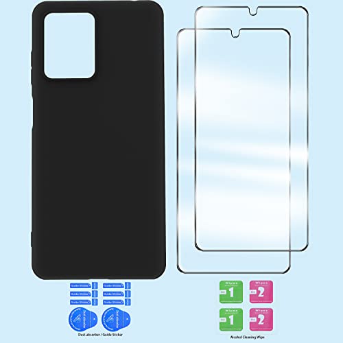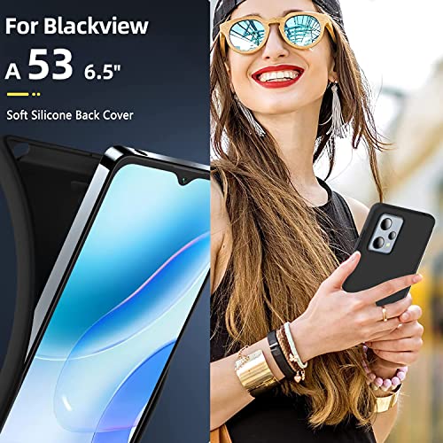 WQRTYJK Cover per Blackview A53/Blackview A53 Pro, con 2 Pack Pellicola Vetro Temperato, Custodia Silicone Morbida TPU Ultra-Sottile AntiGraffio Antiurto Case, Nero
