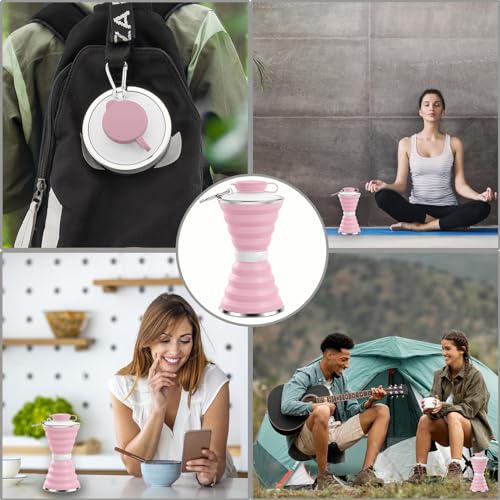 WQSS AOEIU Borraccia Pieghevole da Campeggio, con Moschettone, Tazza da Viaggio Pieghevole Tazza D'acqua Portatile, Silicone Borraccia Morbida 500 ML, per Sport, Viaggi, Palestra, Escursionismo(Rosa)
