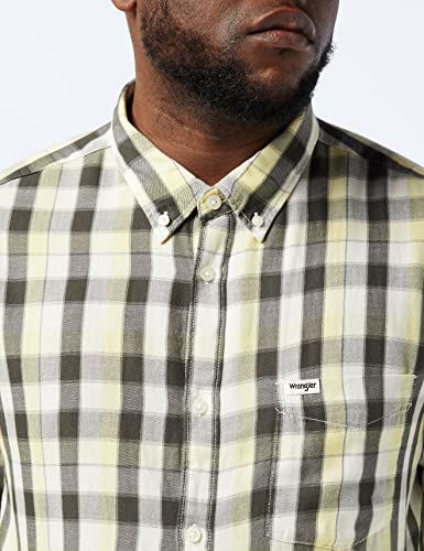 Wrangler 1PKT Button Down Camicia, Faded Black, Large Mens