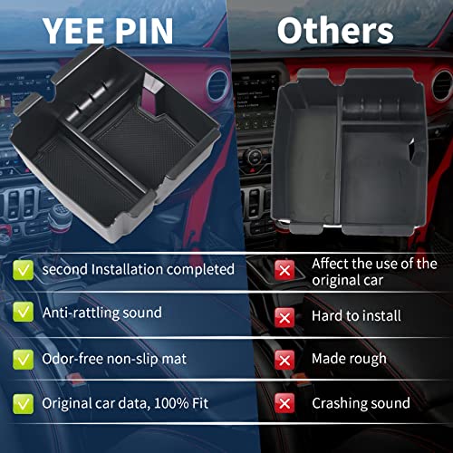 YEE PIN Wrangler jl 4xe Gladiator JL - Scatola portaoggetti per Jee*p Wrangler JL 2018-2023 / Gladiator JL 2020+ organizer per console centrale braccioli, accessori con tappetino antiscivolo