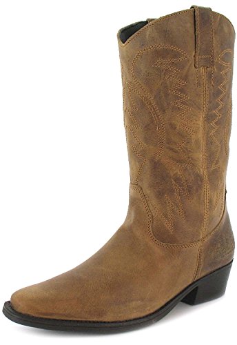 Stivali Western/cowboy nove uomini/uomo scivolare su il Pelle salvezza superiore alti con dei dettagli di punto a superiore.