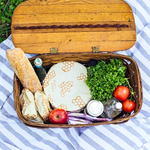 Realizzato a mano con cotone biologico, cera d'api raccolta sostenibile, olio di jojoba biologico e albero nRPA2 0232023Ridurre la tua impronta di carbonio - Bee's Wrap è completamente biodegradabile e compostabile. Riutilizzabile: le proprietà antibatteriche naturali aiuteranno a mantenere il cibo fresco e consentire un uso ripetuto. Utilizzato più volte alla settimana, Bee's Wrap dovrebbe durare per circa un anno.