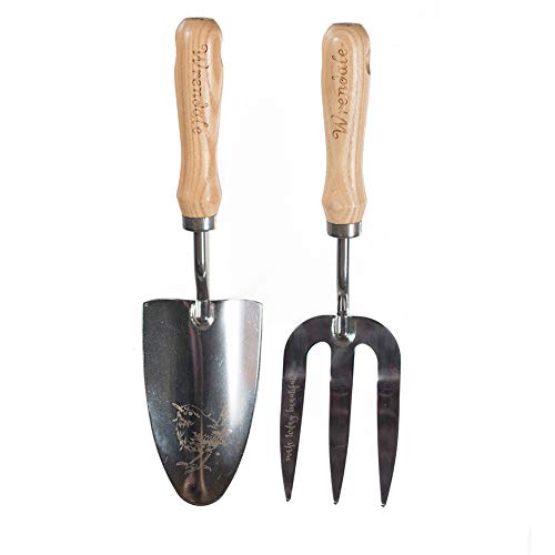 Wrendale Garden Tools - Set di forchetta e cazzuola in acciaio inox illustrati