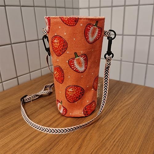 Dimensioni: Puoi ricevere 2 set di coperchi per bottiglie d'acqua,Griglia fragola & viola,19 cm di altezza,8 cm di diametro,60 cm di lunghezza del cinturino e il più lungo regolabile a 105 cm per soddisfare le tue esigenze.