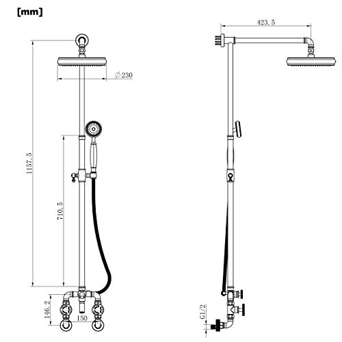 WRISCG Pioggia Sistema Doccia con Miscelatore termostatico per Doccia rubinetti da Bagno Set con soffione, doccetta e Rubinetto Colonna Doccia con Soffione 3 Funzioni Set Doccia Completa