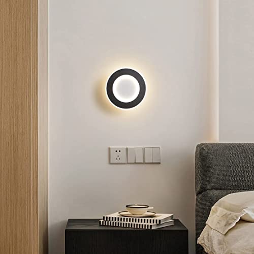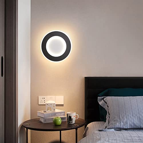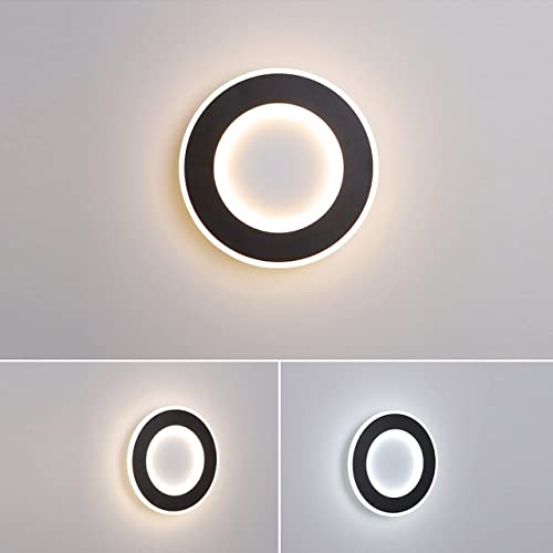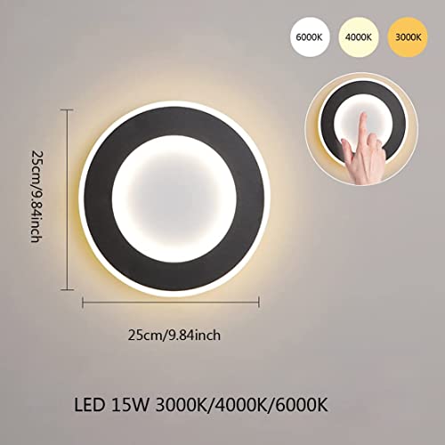 WRMING LED Applique da Parete Interni con Interruttore Touch 15W Moderna Lampada da Parete 3000K/4000K/6000K Metallo Luce da Parete per Soggiorno Cucina Scale Corridoio Camera da Letto (black runde)