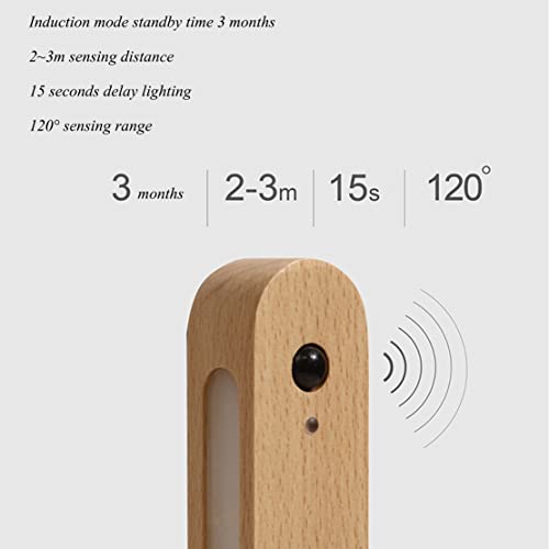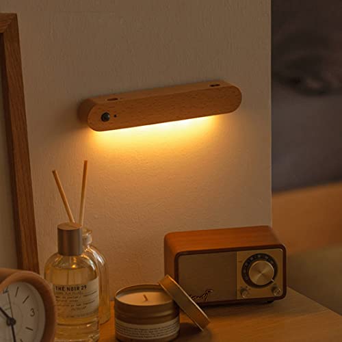 WRMING LED Lampada da Parete a Pile in Legno con Rilevatore di Movimento Senza fili Applique da Parete Interno con Interruttore USB Ricaricabile Bianca Calda Luce Notturna per Camera da Letto