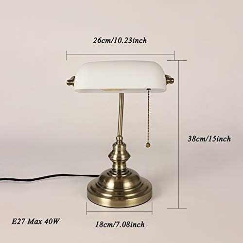 WRMING Vintage Lampada da Scrivania Banchiere con Interruttore, Elegante Retro Lampada da Tavolo per Ufficio Camera da Letto Soggiorno Studia Biblioteca, Finitura Bronzo, Vetro, E27,Bianca