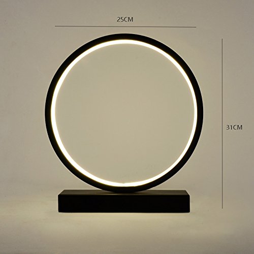 WSHFOR Luce creativa nordica lampada da tavolo in alluminio Cerchio a LED, lampada da comodino, lampada da tavolo semplice moderna sala studio, bianco e nero (Colore: Bianca-Warm light)