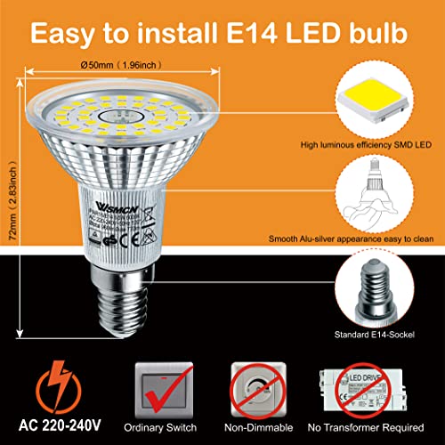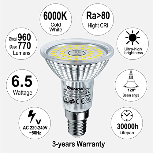 WSMCN 6.5W E14 Lampadine LED, Luce Bianca Fredda 6000K, Equivalenti a Lampadine Alogene da 100W, 770LM Non Dimmerabile R50 Spotlight Senza sfarfallio, Angolo a Fascio 120° Faretti, Confezione da 6