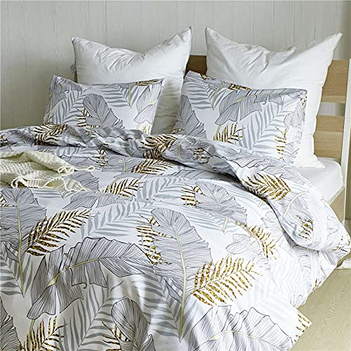 WSNY Copripiumino Reversibile con Motivo Floreale Copripiumino Matrimoniale 240x220 cm Moderni Set Biancheria Letto con Federa 50x75 cm Fiori Piante Verde Beige (Oro,240x220 cm +(50x75 cm) x2)
