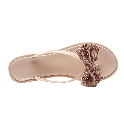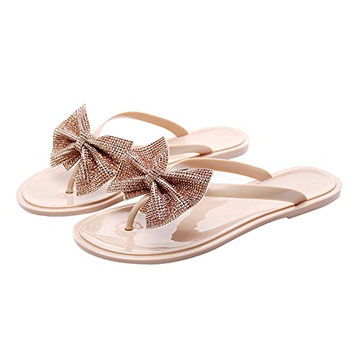 Wszbdoh Infradito da donna Flops Bowknot Flash Diamond Sandali da donna estivi, pantofole per spiaggia, piscina, interni ed esterni, Donna, beige., 40 EU