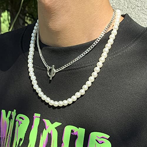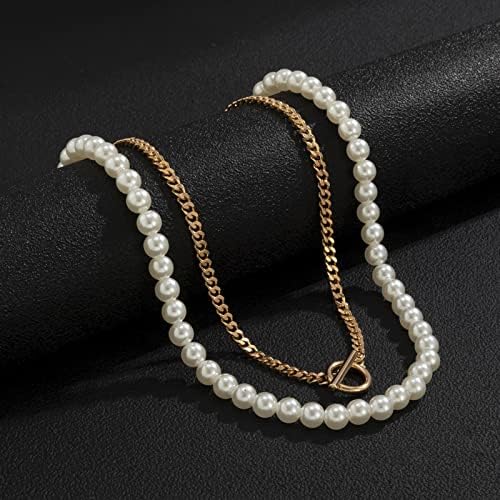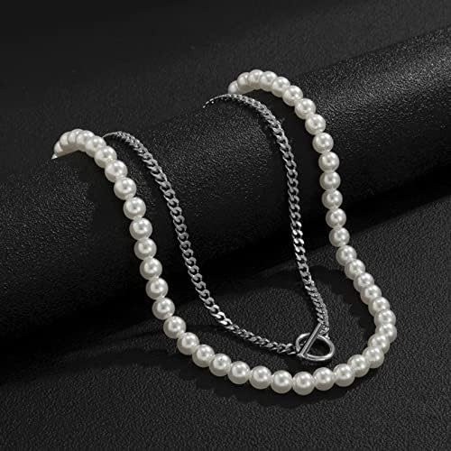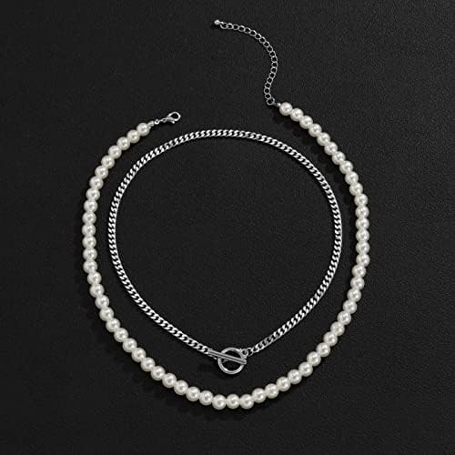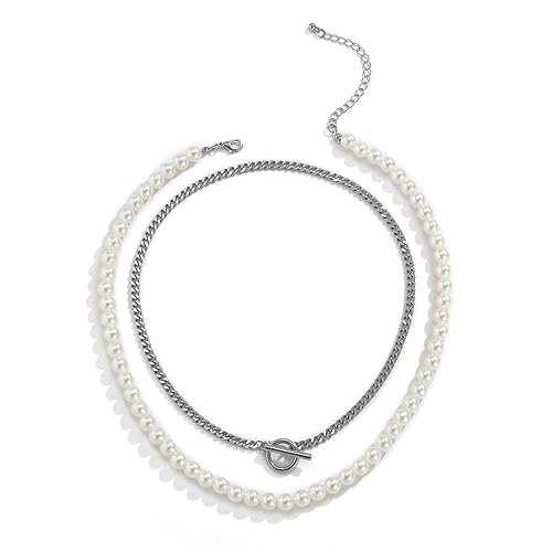 WSZJLN Collana Girocollo con Perle di Perle Bianche Punk per Uomo Donna Collana con Catena Color Argento Dorato a Strati Gioielli di Moda