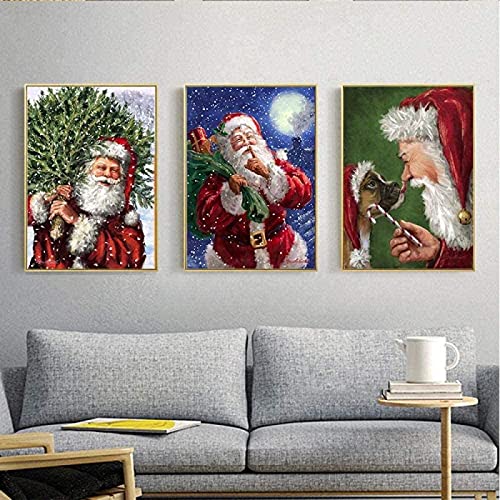 WTCYZYQ Natale Decorazioni 3 Pezzo Quadro Tela Quadri Moderni Parete Arte Stampa E Poster Babbo Natale Per Soggiorno Camera Casa Decorazioni Senza Cornice