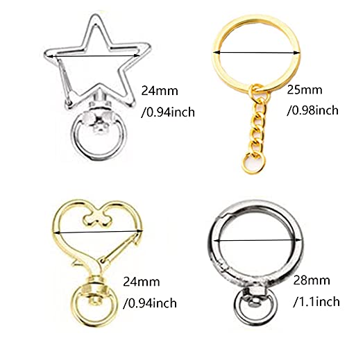 WTpin 60 Pezzi Moschettoni Girevoli con Chiusura, Ganci a Scatto per Portachiavi in Metallo, Mini Fibbia Portachiavi in Metallo, per Artigianato Fai da Te (Argento e Dorato)