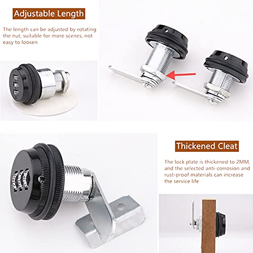 【Specifiche】 La serratura a camma ha una lunghezza del cilindro di 20 mm/0,7 pollici, i 3 quadranti offrono all'utente fino a 1.000 combinazioni possibili La combinazione predefinita della password è 0-0-0 ed è ripristinabile. Nota: durante la rotazione per lo sblocco, tenere la mano sulla parte filettata e non toccare nessun'altra posizione, in modo da poter ruotare con successo per lo sblocco.