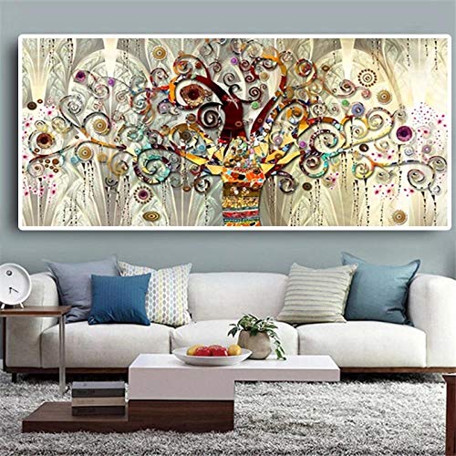 WTYBGDAN Albero della Vita Pittura a Olio Classica di Paesaggio su Tela Poster e Stampe Immagini di Quadri di Grandi Dimensioni per Soggiorno | 70x140 cm/Senza Cornice