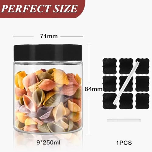 Wubushan Barattoli Plastica con Coperchio, 9PCS Contenitori Ermetici per Alimenti(250ML), Barattoli per Pasta Dispensa, contenitori piccoli per sali da bagno, oatmeal, cereali, feste, farina piccoli