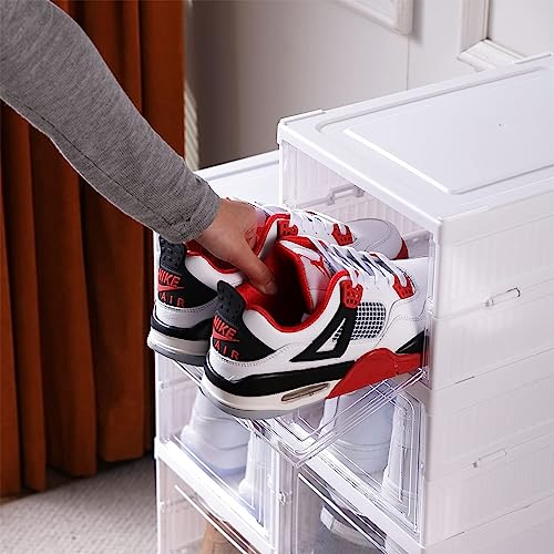 1. Scatole portascarpe pieghevoli: questa piega in plastica scatole scarpe trasparenti è un punto di svolta per i tuoi problemi di stoccaggio delle scarpe, risparmia spazio e ti offre comfort e comodità di riporre ogni paio.