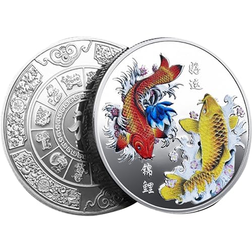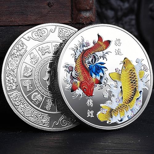 Wudaizhi Moneta Fortunata 1pc Koi Pesce Moneta Commemorativa Cinese Moneta da Collezione retrò Souvenir Mone