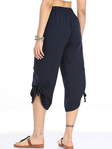 Wudodo Donna 3/4 Jogger con Coulisse Pantaloni Tuta Pantaloni Sportivi Pantaloni Tuta Corti di Vita Alta,Blu,M