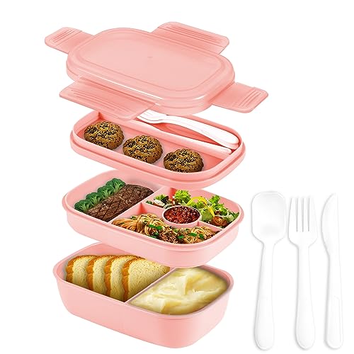 PRATICO-PORTATILE: Bento lunch box 3 strati, 4 serrature, bento box fissano saldamente senza allentarsi. Portapranzo misurare 24cmX14cmX10cm garantisce capienza occupa poco spazio.
