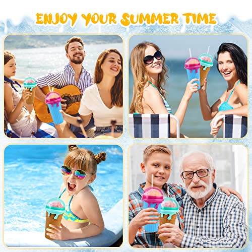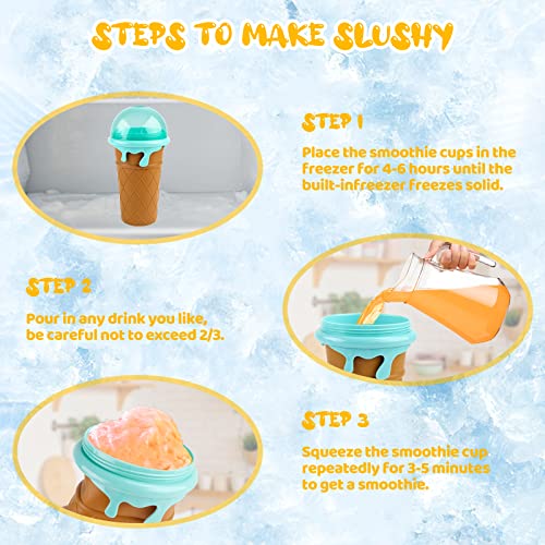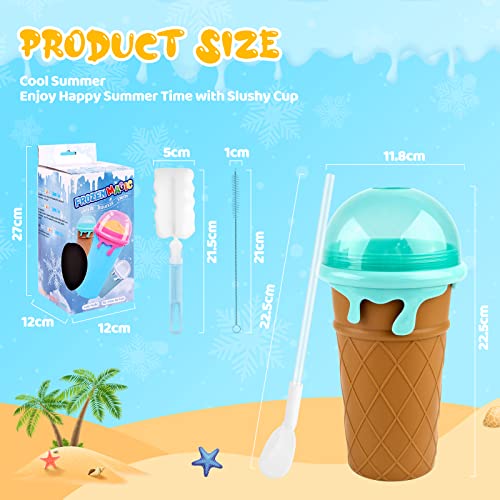 WUGU Slushy Maker Cup, 500 ml Frozens Squeeze Cup in Silicone con cannuccia e cucchiaio 2 in 1, Bicchiere da ghiaccio Slushy con spazzola per la pulizia