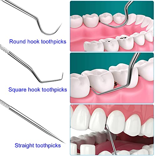【Design Comodo e Pratico】- Il nostri stuzzicadenti in acciaio inox set contiene 2 bastoncini dritti, 1 gancio rotondo e 1 gancio quadrato.Tre diversi stuzzicadenti sono progettati in base alla struttura orale, che possono rimuovere facilmente i residui di cibo e mantenere l'igiene orale. Inoltre, viene fornito anche con una scatola di immagazzinaggio per una facile conservazione.