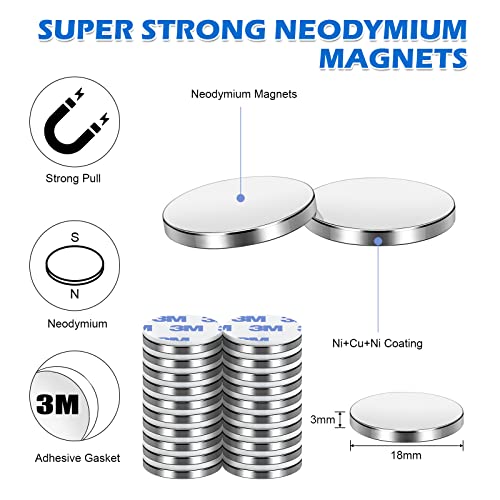 Wukong Magneti forti, 20 pezzi, con autoadesivi, 18 x 3 mm, extra forti al neodimio, per lavagna bianca, frigorifero, progetto e artigianato fai da te