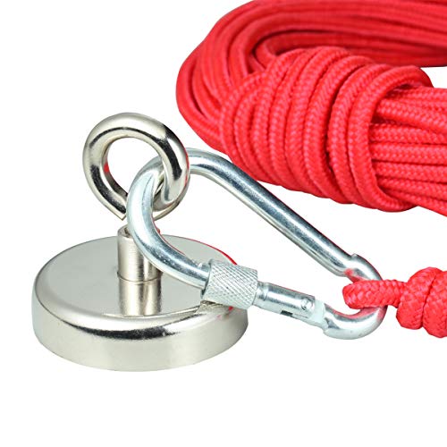Wukong - Magneti magnetici al neodimio, con Corda da 20 m, N52, Diametro 60 mm, con Occhiello in neodimio, F60 Magnet mit 20m Seil