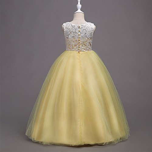Wulide Bambine e Ragazze Pizzo Chiffon Filati Netti Lungo Cerimonia Abiti Compleanno Partito Matrimonio Damigella Comunione Sera Vestiti Vestito di Principessa, Giallo, 120cm/5-6 Anni