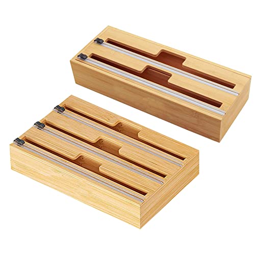 Wulmebo Dispenser di Fogli di Alluminio, Distributore per Pellicola con Taglierina, Taglierina per Pellicole Salvafreschezza, Organizer in Legno di bambù per Cassetti Cucina(2in1)