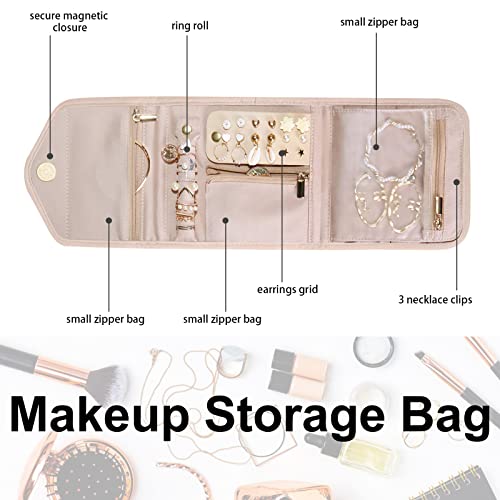 Wulmebo Portagioie da Viaggio, Rotolo per Gioielli Borsa, Rotolo Portagioie Organizzatore per gioielli da viaggio Borsa portagioie per Anelli Orecchini Collane Orologi Bracciali Spille