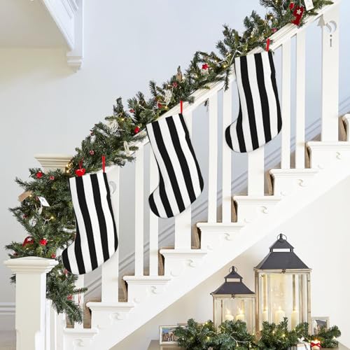 WURTON Calze di Natale unisex con stampa a righe bianche e nere calze di Babbo Natale, perfette decorazioni per albero di Natale