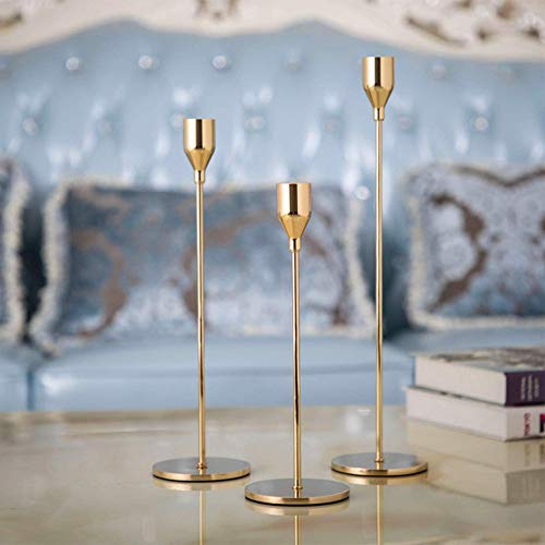 Wuudi - 3 candelabri in diverse dimensioni, 33 / 28 / 24 cm, porta candele in metallo, decorazione vintage, ideali come regalo per San Valentino, Natale o matrimoni