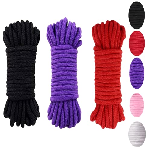 WUWYOUWL Corda di Cotone Morbida, 10 m/8 mm Universale Filo di Cotone Spesso (8mm-Nero+Rosso+Viola)