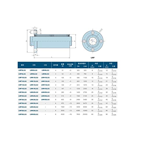 Wuxun-Zhou Cuscinetto lineare lineare a Flangia lineare a Flangia Lunga 1pc LMF60LUU per la Stampante Lineare 3D CNC dell'albero lineare (Color: LMF60LUU)