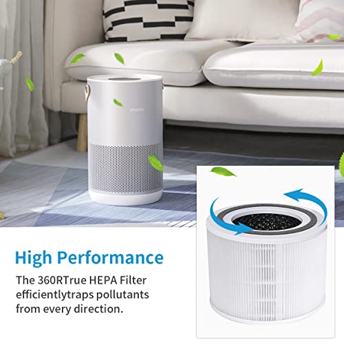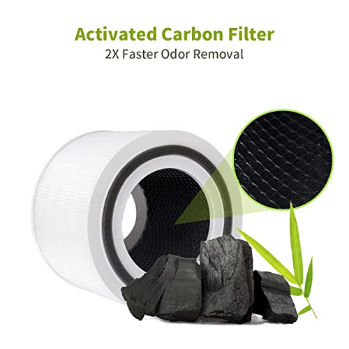 【Filtrazione 3 in 1 ad alta efficienza】 Il filtro adotta un sistema di filtrazione HEPA ad alta efficienza 3 in 1, incluso prefiltro, filtro ad alta efficienza e filtro a carbone attivo. I filtri dell'aria catturano piccole particelle per contribuire a migliorare la salute.