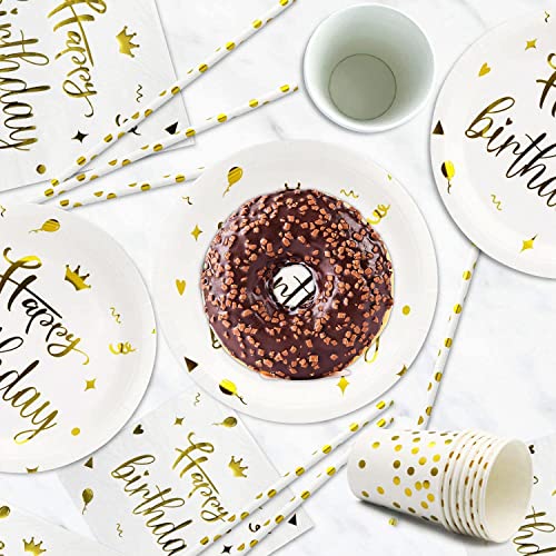 【Design Perfetto】Il set di posate è decorato con scritte in lamina d'oro happy birthday su sfondo bianco e presenta un titolo dorato in grassetto. Questi piatti in platino sono un must per le feste e stupiranno sicuramente i tuoi ospiti!