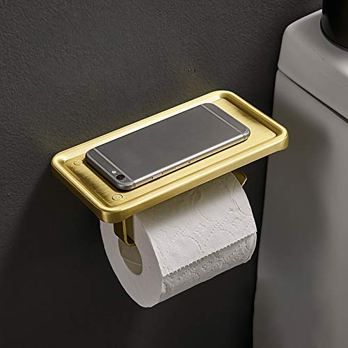 WXDL Oro Spazzolato Porta Carta Igienica da Muro Portarotolo Carta Igienica Spazio Alluminio Portarotolo Igienica con Ripiano per Bagno Toilette e Cucina (20 x 10 cm)