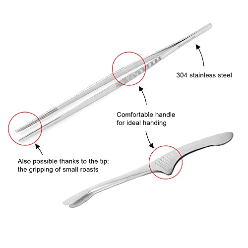 Pacchetto incluso:Include 1pz pinzette BBQ in acciaio inox e 1pz pinzette da cucina fine Tongs.The punta abbastanza smussato per essere sicuro di toccare o addirittura premere,e tiene il cibo in modo sicuro,riducendo al minimo il rischio di cibo scivolare e scivolare.