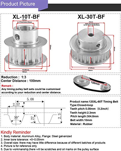 WYanHua-Puleggia distribuzione, XL Timing Belt Puley Set XL 10T 30T 11mm Larghezza della cinghia for cintura dentata Riduzione della puleggia 1: 3 120xL Puleggia cinghia CNC 1 Set Trasmissione fluida