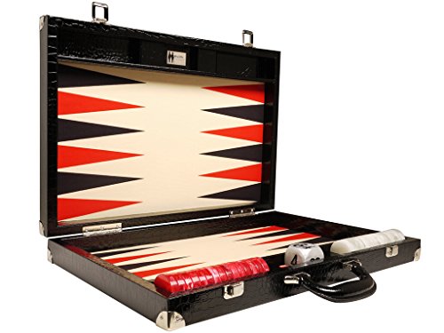 Wycliffe Brothers Set di Backgammon da torneo Pelle di Coccodrillo Nera con Campo Crema (Punte Nere) - Gen III