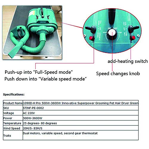 WYJW 3300 W Doppia Tensione 110-240 V Asciugacapelli per Cani da Compagnia Soffiatore per Animali Domestici Doppio Motore a Bassa rumorosità velocità del Vento Continua 48x35x29 cm