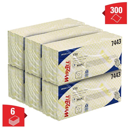 WypAll X50 Panni per la pulizia con codice colore 7443 - Panni per la pulizia gialli - 6 confezioni x 50 panni con codice colore intercalati (totale 300)