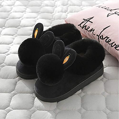 WYSFLY Pantofole invernali per ragazze morbide pantofole soffici per le donne pantofole da casa coniglio dei cartoni animati Nero 38/39 EU (dimensione dell'etichetta 40/41)